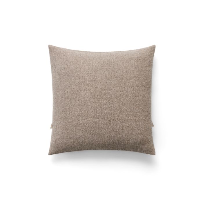 Ein quadratisches, handgewebtes Kissen mit einem eleganten Diamantgewebe aus natürlicher Sartuul-Wolle. Das Design umfasst einen Umschlagverschluss und charmante, dekorative Fransen in einem schönen hellbraunen Farbton.