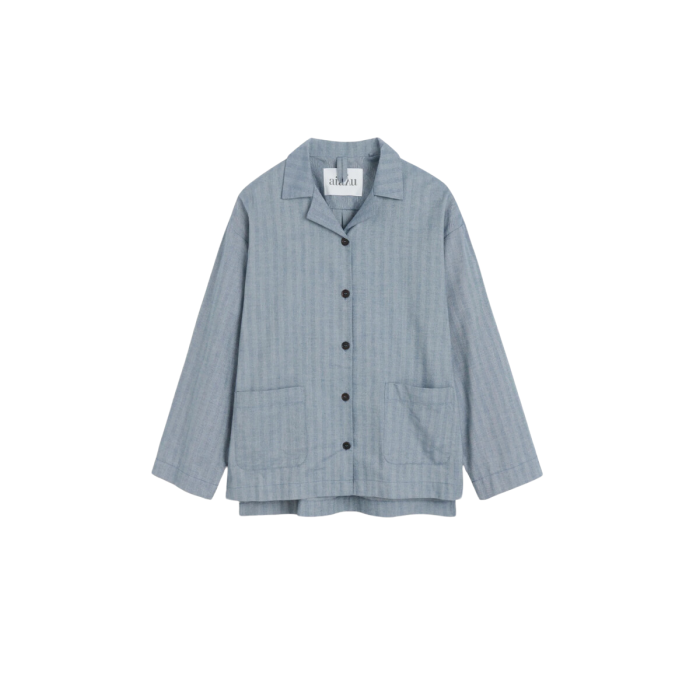 Ein stilvolles Overshirt in Regular Fit, hergestellt aus weicher und leicht gebürsteter Bio-Baumwolle mit Fischgrätenmuster. Es hat einen klassischen Kragen, zwei Taschen und handgefertigte Hornknöpfe, die zusammen ein elegantes, aber entspanntes Aussehen schaffen.