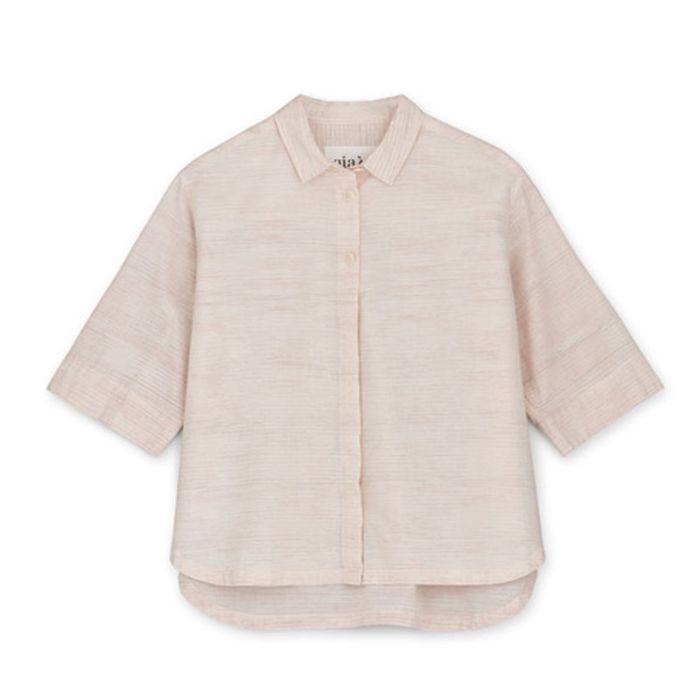 Das Sue Hemd hat einen klassischen Kragen und eine teilweise versteckte Knopfleiste mit weißen Hornknöpfen vorne. Hergestellt aus 100% ökologischer Baumwolle in einer leichten und weichen Qualität.