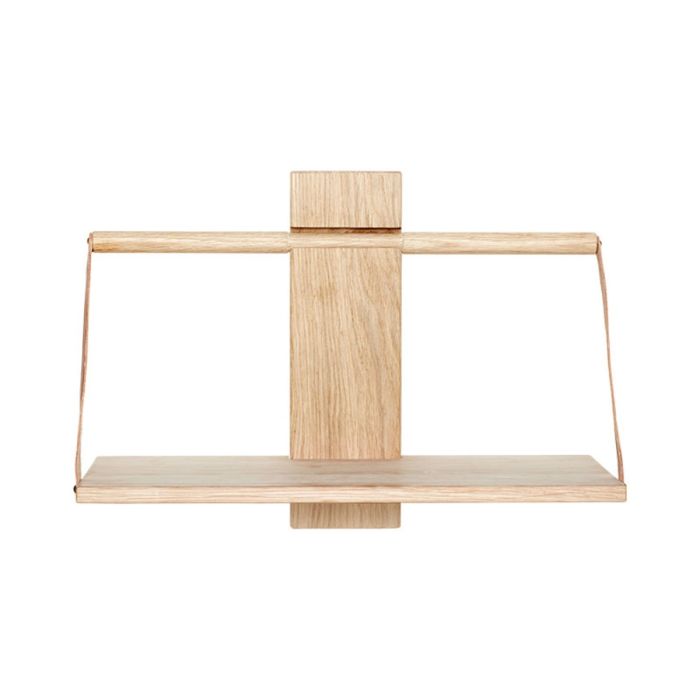 Wood Wall lässt sich einfach an der Wand montieren, und Sie haben die Möglichkeit, mehrere Regale übereinander zu stapeln, was ein schönes und funktionales Regalsystem schafft. Das Regal ist aus massiver Eiche gefertigt, und die feinen Riemen bestehen aus echtem Kernleder, was ihm ein exklusives und zeitloses Aussehen verleiht.