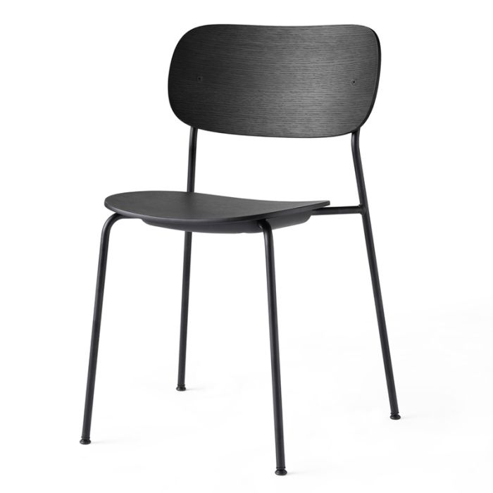 Audo Copenhagen. Co Chair ist in mehreren Varianten erhältlich, mit oder ohne Armlehnen, alle mit schwarzen pulverbeschichteten Stuhlbeinen aus Stahl.