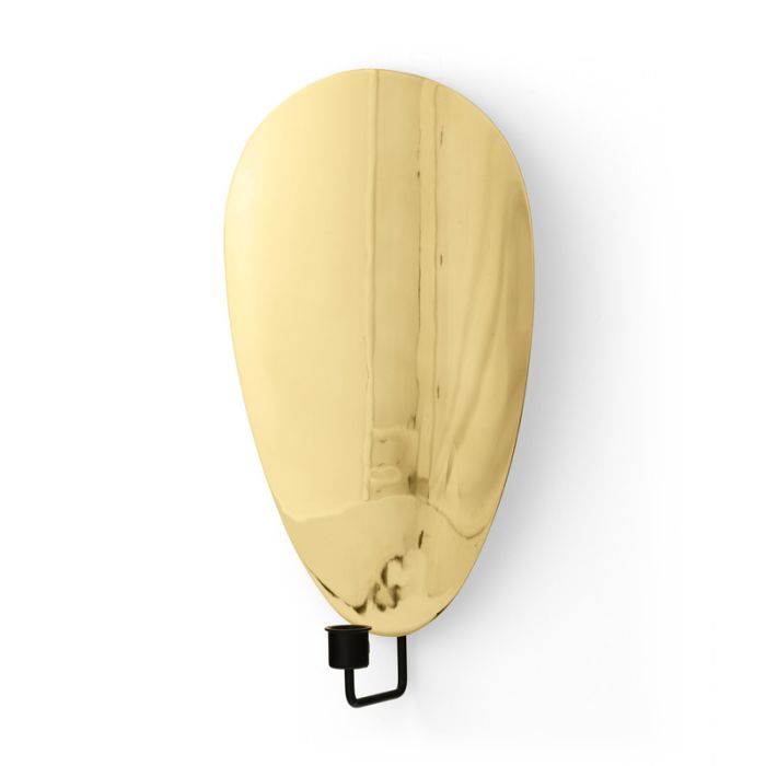 Wandkerzenhalter mit einem skulpturalen Design. Der Flambeau-Kerzenhalter verfügt über eine Metallrückplatte, die das lebendige Licht vergrößert und reflektiert, um spannende Schatten und eine schöne Atmosphäre zu schaffen.