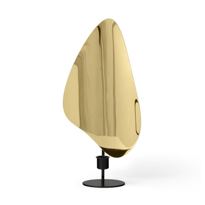 Kerzenständer mit einem skulpturalen Design. Der Flambeau-Kerzenständer verfügt über eine Metallrückwand, die das lebendige Licht vergrößert und reflektiert, um spannende Schatten und eine schöne Atmosphäre zu schaffen.
