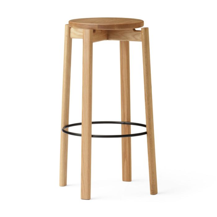 Der Passage Barhocker ist aus massiver FSC-zertifizierter Eiche gefertigt. Der Stuhl erhält eine moderne Kante dank seiner cleveren Flat-Pack-Konstruktion. Der Barhocker hat eine Fußstütze, die eine angenehme Sitzposition über längere Zeit gewährleistet. Die Stangenhöhe passt perfekt zu den Tischplatten, was das vielseitige Design zur idealen Mischung aus Funktion und Komfort macht.