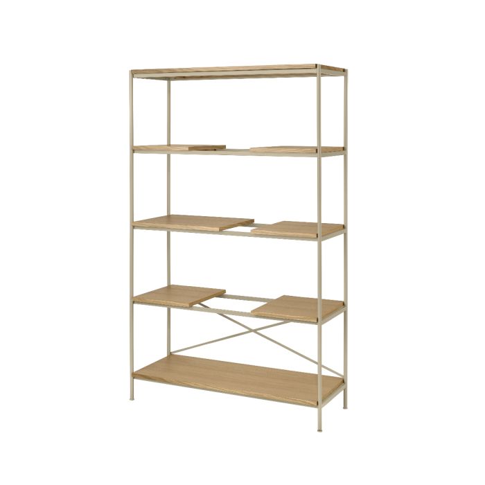 Das SUKOYA-Metallregal, entworfen vom japanischen Designer Kazushige Miyake, vereint praktische Aufbewahrung mit einem minimalistischen und stilvollen Design. Das Regal verfügt über flexible und verstellbare Regale, die je nach Bedarf angepasst werden können, was es ideal für die Aufbewahrung von Dekorationen oder anderen Gegenständen macht. SUKOYA ist in zwei Versionen erhältlich - Holz oder Stahl - und diese Metallversion in der Farbe Nomad natürlich lackiert verleiht Ihrem Zuhause einen raffinierten und zeitlosen Ausdruck. Es bietet viel Stauraum und ist einfach zu montieren, was es sowohl funktional als auch ästhetisch ansprechend macht.