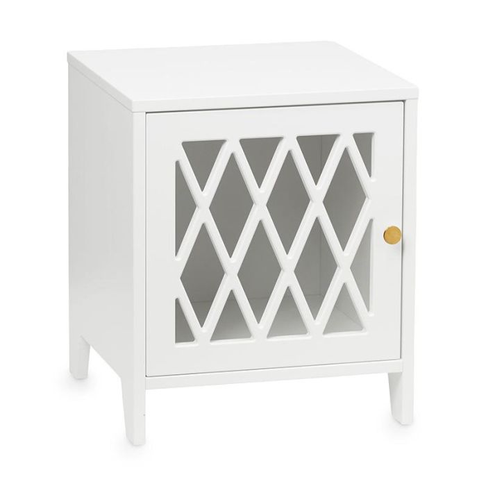 Verwenden Sie diesen hübschen Nachttisch im Kinderzimmer, um Gemütlichkeit und Funktionalität in den Raum zu bringen. Hinter der Tür des Tisches ist Platz zum Aufbewahren von Kleidung, Deko oder Spielzeug, das Sie aus dem Weg haben möchten.