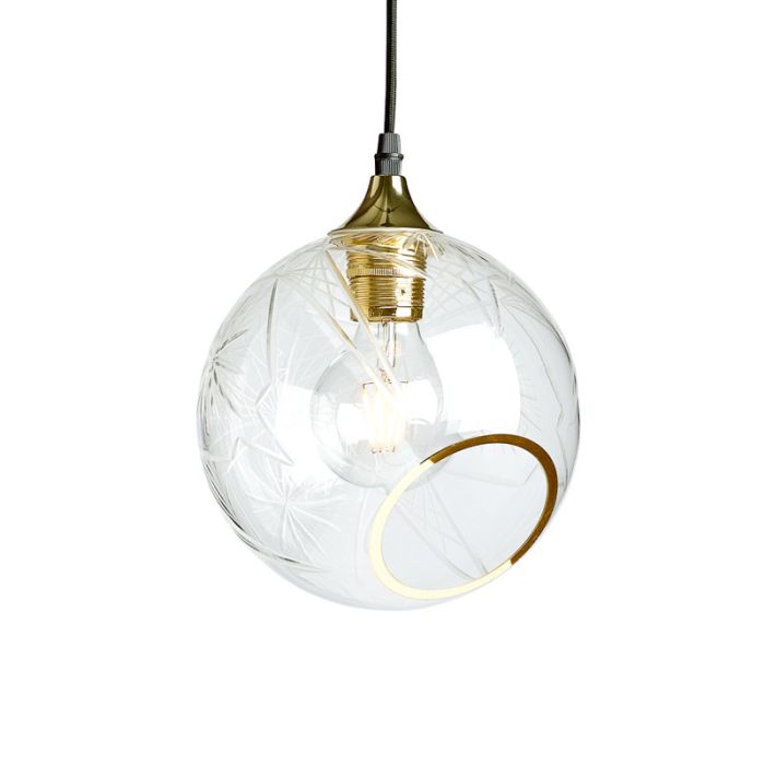 Die Ballroom-Serie ist, wenig überraschend, die beliebteste Lampenserie von Design By Us. Die Lampe passt zu jedem Anlass in jedem Raum und ist in vielen verschiedenen Farben erhältlich. Diese Lampe zeichnet sich durch ihre fein handgefertigten Stängel im klaren Glas sowie einen handbemalten goldenen Messingrand aus, der der Lampe ein kristallähnliches Aussehen verleiht.