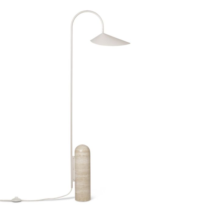 Arum ist der Name der Serie von Ferm Living, in der die organischen Formen deutlich sind. Eine schöne und elegante Lampe, die in jedem Raum zum Blickfang werden kann. Das Innere des Schirms ist matt creme, das sanft Licht in den Raum reflektiert. Darüber hinaus ist der Fuß der Lampe aus massivem Travertin gefertigt, der im Kontrast zu den organischen Formen des Lampenschirms steht. Eine sehr schöne Lampe, die zu den meisten Einrichtungsstilen passt.