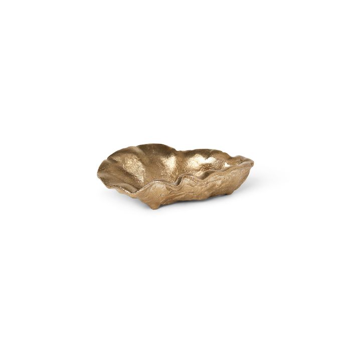 Diese schöne kleine Schale wurde ursprünglich aus einer echten Austernschale geformt und dient als elegante Aufbewahrungsmöglichkeit für Schmuck oder andere kleine, feine Gegenstände. Sie ist detailreich und sorgfältig aus 100% Messing gefertigt, was einen schönen Kontrast zur natürlichen, organischen Form der Schale schafft.