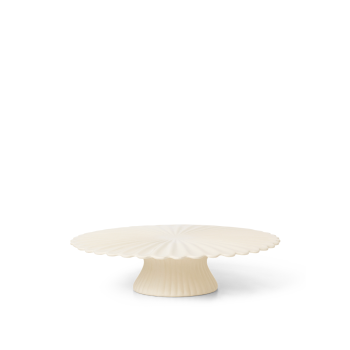 Die skulpturale Fountain-Kuchenplatte ist eine keramische Dessertplatte mit einem eleganten kleinen Fuß und einem weichen, plissierten Design, das die Aufmerksamkeit auf sich zieht. Inspiriert von klassischen Springbrunnen kann diese Platte verwendet werden, um bei Hochzeitsfeiern zu dekorieren, Charme zu Teepartys hinzuzufügen oder einen Hauch von Eleganz auf den Küchentisch zu bringen. Die glasierte Oberfläche macht die Platte leicht zu reinigen.