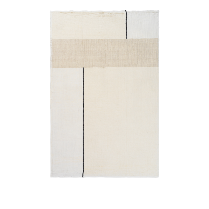 Die Dela-Decke ist eine Hommage an die Kunst des Handwebens und besteht aus einer schönen Mischung natürlicher Fasern, die ein harmonisches Gefühl erzeugen. Die Decke besteht aus Baumwolle, Leinen und Bambus, angeordnet in großen Abschnitten, und ihr doppellagiges Design vermittelt ein Gefühl von Ruhe und Gemütlichkeit. Beachten Sie die feinen Variationen in der Textur, die das Ergebnis der einzigartigen Eigenschaften jeder Faser sind und durch die natürlichen Nuancen der ungefärbten Materialien hervorgehoben werden.