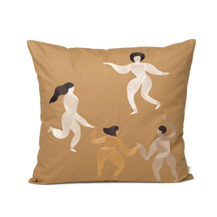 Ferm Living Free Kissen mit einem schönen Motiv mit vier tanzenden Körpern, bestickt mit seidig weichem Faden auf einem Bezug aus 100 % unbehandelter, ökologischer Baumwolle, verleiht Ihrem Sofa oder Schlafzimmer einen schönen, femininen Touch.