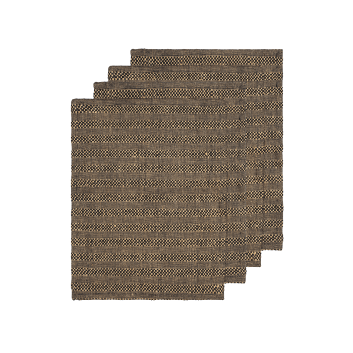 Gather Tischsets sind meisterhaft aus einer Mischung aus Jute und Bio-Baumwolle gewebt, die die erdige Textur von Jute mit der Weichheit und Langlebigkeit von Baumwolle kombiniert und so eine taktile und einladende Oberfläche schafft. Das traditionelle Design mit zeitlosen Streifen und einem klassischen Karomuster bietet vielseitige Einsatzmöglichkeiten, die sowohl für den Alltag als auch für besondere Anlässe perfekt geeignet sind.