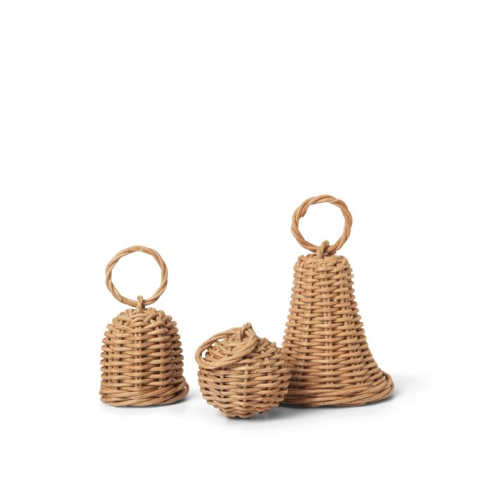 Ferm Living Weihnachtsschmuck in geflochtenen Glockenkugeln sorgfältig von Hand aus 100 % Rattan geflochten.