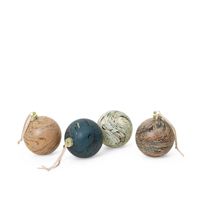 Ferm Living Marmor Kugeln. Set mit 4 schönen Weihnachtskugeln aus Marmor, die Ihrem Weihnachtsschmuck Luxus verleihen.
