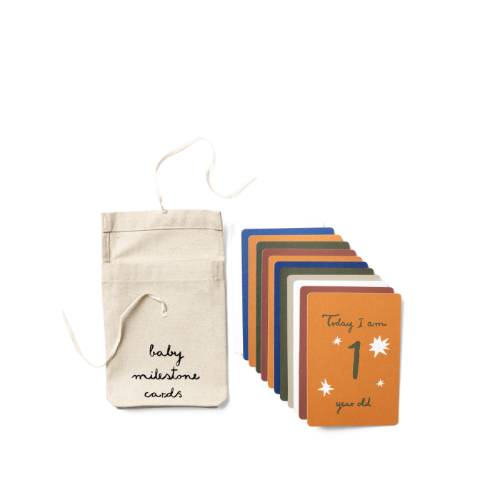 Die Milestone-Karten sind eine charmante und unvergessliche Möglichkeit, die Entwicklung Ihres Kindes zu dokumentieren. Diese Karten sind elegant gestaltet mit schönen Illustrationen und Texten und bestehen aus FSC®-zertifiziertem Papier mit einem feinen, halbmatten Finish. Bewahren Sie alle kostbaren Meilensteine mit diesen exquisiten Karten auf und schaffen Sie bleibende Erinnerungen an die magische Reise, die Sie gemeinsam unternehmen. Das Set wird in einem Baumwollbeutel geliefert, der es einfach macht, die wertvollen Erinnerungen aufzubewahren und im Blick zu behalten.