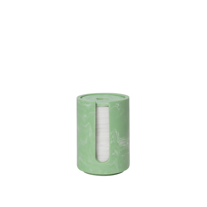 Der Mist Vatrondelhalter ist eine runde Aufbewahrungslösung, die für Wattepads entwickelt wurde. Hergestellt aus marmoriertem Harz, kombiniert sie Langlebigkeit mit einem leichten und raffinierten Ausdruck. Die klaren Linien und das stapelbare Design spiegeln die geometrische und minimalistische Ästhetik der Mist-Serie wider, was die Serie vielseitig und platzsparend macht. Dieser Halter ist eine sowohl anspruchsvolle als auch praktische Ergänzung für das Badezimmer. Um die Qualität zu erhalten, sollte der Mist Vatrondelhalter vorsichtig von Hand gereinigt werden.