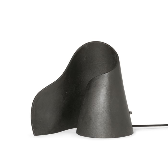 Die Tischlampe besteht aus 100 % recyceltem gegossenem Aluminium mit schwarzer Patina. E14-Fassung und 2,6 Meter schwarzes Kabel.