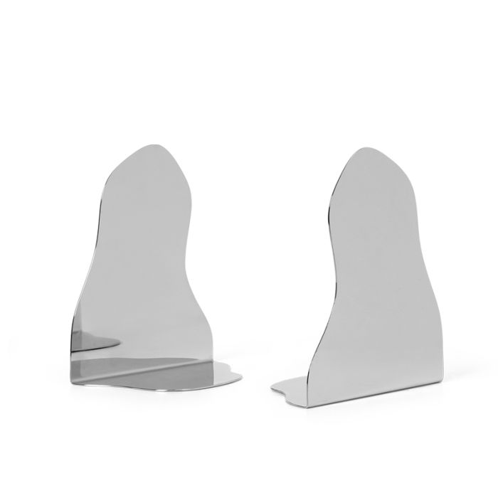 Die Pond Buchstütze ist Teil der Pond-Serie, bei der organische Formen den Ausdruck der bekannten Designstücke definieren. Die Buchstütze Pond besteht aus einer gebogenen Edelstahlplatte mit Spiegelfinish und unterstützt diskret Ihre Bücher und Magazine im Bücherregal.
