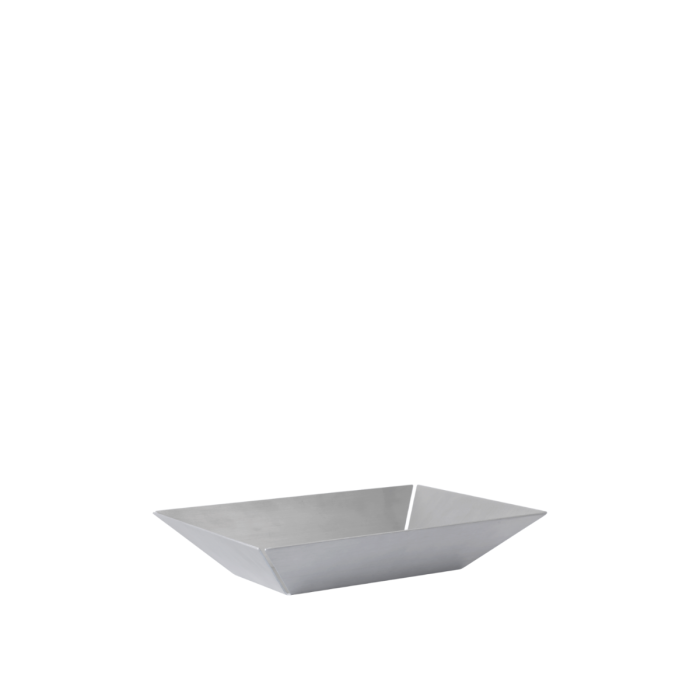 Die Press-Platte ist sorgfältig aus flachen, gebürsteten Aluminiumplatten gefertigt, die zu einer dreidimensionalen Form gepresst sind und ein strukturiertes Volumen erzeugen. Die bewusst geschnittenen oder hohlen Kanten, die gefaltet werden können, bilden ein einzigartiges Designelement. Diese vielseitige Platte kann verwendet werden, um verschiedene Haushaltsgegenstände zu organisieren, während die klaren, geometrischen Linien einen Hauch von moderner Eleganz in den Raum bringen.