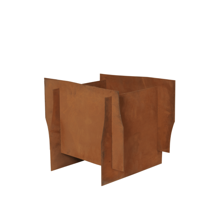 Lapel Pflanzentopf ist aus Cortenstahl gefertigt, der für seine beeindruckende Haltbarkeit und Widerstandsfähigkeit gegen Wetterbedingungen bekannt ist. Das Design besteht aus flachen Platten, die miteinander interagieren und eine leichte, scharfe Struktur mit einem erhöhten zentralen Kern schaffen, der eine visuelle Balance bietet. Inspiriert von der Asymmetrie von fragmentiertem Papier, verleiht dieses Design eine dynamische Ästhetik, die sich leicht in jede Einrichtung einfügt und eine taktile, authentische Note hinzufügt.