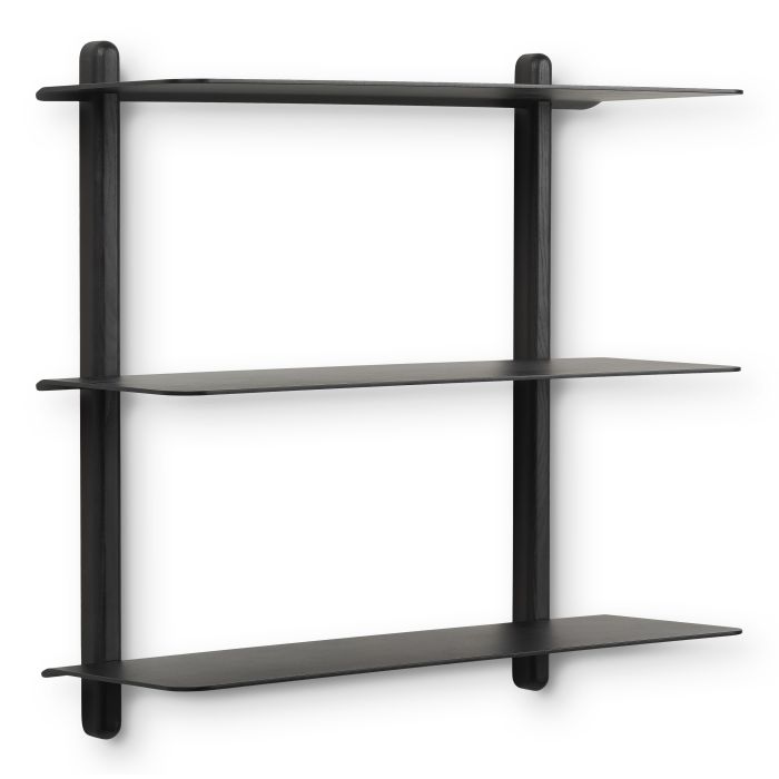 Beliebtes Regal von Geist. Das Nivo-Regal hat einen leichten nordischen Ausdruck ohne überflüssige Elemente, was dem Regalsystem ein schwebendes und elegantes Aussehen verleiht. Das Regal ist in allen Räumen des Hauses schön.