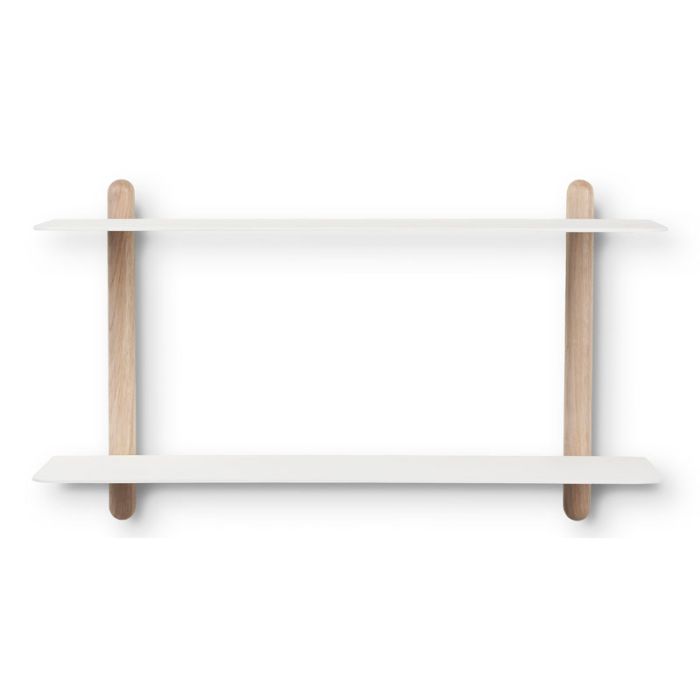 Beliebtes Regal von Geist. Das Nivo-Regal hat einen leichten nordischen Ausdruck ohne überflüssige Elemente, was dem Regalsystem ein schwebendes und elegantes Aussehen verleiht. Das Regal ist in allen Räumen des Hauses schön.