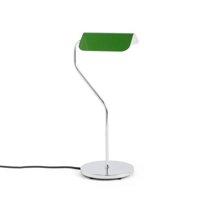 Die Apex-Tischlampe ist mit einem gefalteten Stahlbildschirm gestaltet, der eine Silhouette mit einer scharfen Dachlinie schafft, die die Inspiration hinter dem Lampennamen liefert und einen grafischen Kontrast zu den verchromten Sockeln bietet. Die runde Basis und der abgewinkelte Arm werden durch einen farbenfrohen Bildschirm ergänzt, der um 360 Grad gedreht werden kann, was es den Benutzern ermöglicht, das Licht so auszurichten, dass es ihren Bedürfnissen entspricht. Die Apex-Tischlampe bietet eine funktionale Beleuchtungslösung für eine Vielzahl von Räumen und Anwendungen, von einer Arbeitsleuchte auf einem Schreibtisch bis zu einer Leselampe auf einem Nachttisch.