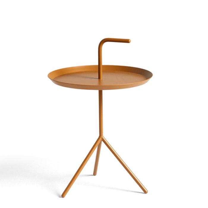 Der schöne DLM Beistelltisch wurde von Thomas Bentzen für HAY entworfen. DLM steht für 'Don't Leave Me', was bedeutet, dass der Tisch überallhin mitgenommen werden kann. Der Beistelltisch verfügt über einen praktischen Griff, der es ermöglicht, den Tisch leicht von Raum zu Raum zu bewegen. Der Tisch hat eine leichte und tragbare Struktur, die durch die drei schrägen Beine stabilisiert wird.