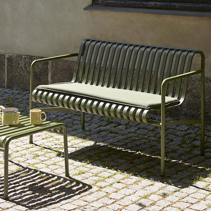 Diese schöne Bank und der Rest der Palissade-Serie wurden von den französischen Brüdern Ronan und Erwan Bouroullec entworfen. Palissade ist eine Sammlung einzigartiger und charakteristischer Outdoor-Möbel. Das Prinzip der Serie ist eine symmetrische Geometrie, bei der visuelle Einfachheit der Schlüssel ist. Ein Teil der Serie ist farblich und formtechnisch so gestaltet, dass er sich problemlos in eine natürliche Landschaft sowie in städtische Gebiete integrieren lässt. Die Kollektion ist also so konzipiert, dass sie in eine Vielzahl von Umgebungen passt, wie z.B. Cafés, Restaurants, Gärten, Terrassen und Balkone.