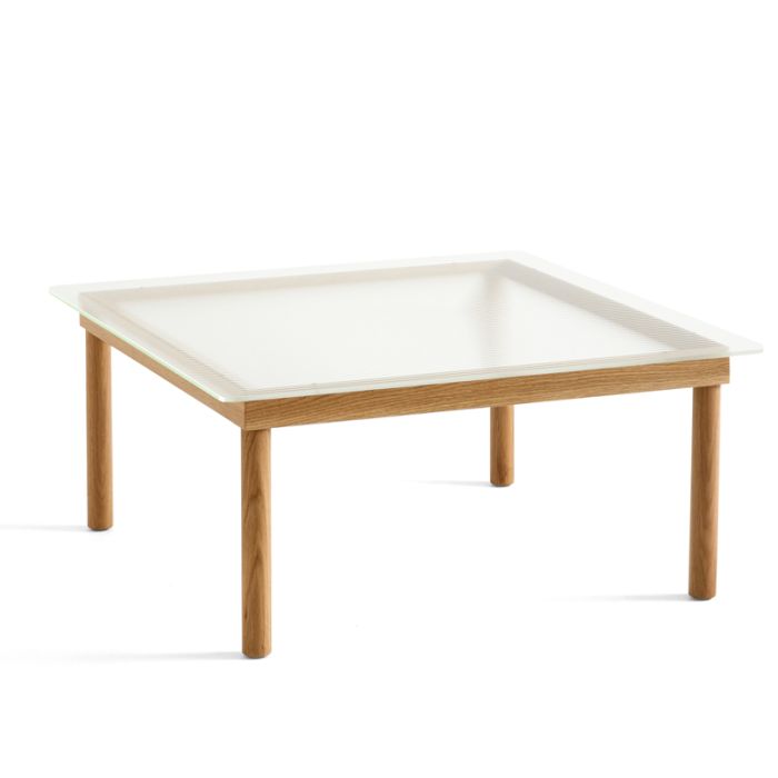 Kofi wurde vom norwegischen Designer Martin Solem für HAY entworfen und ist eine Reihe eleganter und vielseitiger Couchtische mit Glas. Basierend auf dem Wunsch, einen sauberen und funktionalen Tisch mit einem umweltfreundlichen Profil zu schaffen, wurde die Kofi-Serie mit Hilfe intelligenter und effizienter Produktionsmethoden mit einem flachen Design entwickelt. Die schlichte Einfachheit der Maße und Proportionen wird durch die sorgfältige Aufmerksamkeit für Details betont, was zu einer aufgeräumten Ästhetik mit klaren Linien und einer zeitlosen Qualität führt. Mit einem massiven Gestell aus Eiche oder Walnuss aus FSC-zertifiziertem Holz mit einem wasserbasierten Lack ist die Oberseite aus normalem oder Rattanglas gefertigt, das eine markante geriffelte Struktur aufweist. Der Tisch ist in verschiedenen Größen mit verschiedenen Farbrahmen und Glas in klaren oder farbigen Varianten erhältlich.