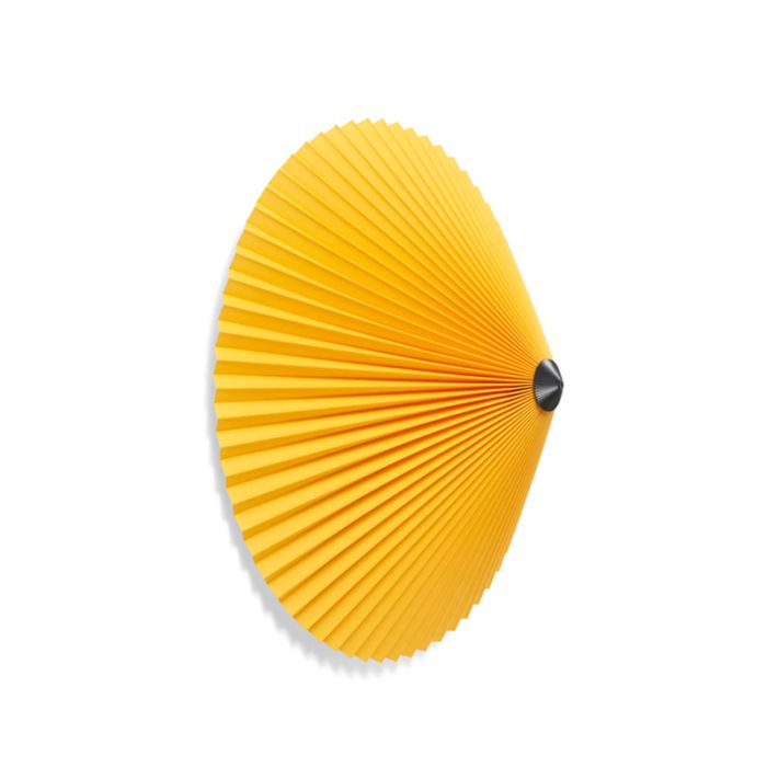 Die Matin Flush Mount Deckenleuchte hat ein modernes, aber dennoch poetisches Design mit einer Konstruktion, die visuelle Zartheit mit physischer Robustheit kombiniert. Die Lampe besteht aus einer Halterung aus lackiertem Stahl zur Befestigung an der Wand oder Decke und ist mit einem plissierten Baumwollschirm in zwei Größen und verschiedenen Farboptionen bedeckt.