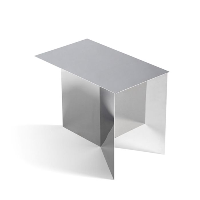 Der Slit-Tisch von HAY ist ein einfacher Metalltisch, der in drei schönen Formen erhältlich ist - rund, rechteckig und sechseckig. Der schöne Lounge-Tisch wird von HAY selbst als Papierorigami beschrieben, das in ein Metalluniversum übersetzt wurde und nach dem Schlitz benannt ist, der erscheint, wenn der Plattenrahmen unter der Tischplatte gefaltet ist.