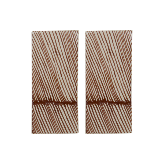 Fügen Sie Ihrem Esstisch mit diesem charmanten Set aus zwei keramischen Servierplatten eine künstlerische Note hinzu. Jedes Stück ist handbemalt mit charakteristischen braunen Streifen und eignet sich ideal für die Präsentation von kleinen Snacks, Brot oder Desserts. Perfekt für die Bewirtung von Gästen oder das Genießen eines persönlichen Frühstücks bieten diese Platten sowohl Stil als auch Funktionalität. Ihr einzigartiges Design macht jede Mahlzeit zu einem eleganten Erlebnis.