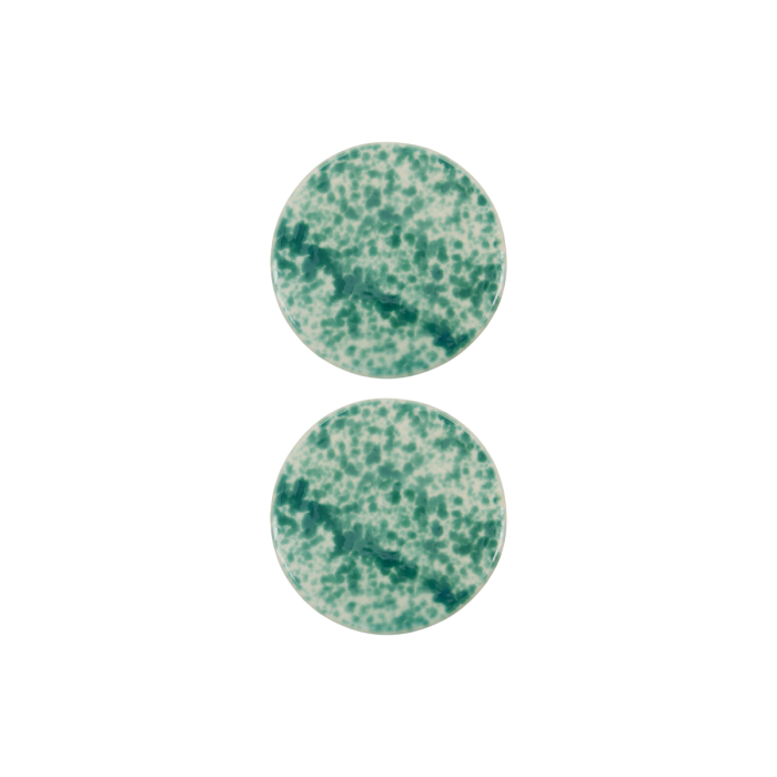 Fügen Sie Ihrem Esstisch mit diesem Set aus zwei keramischen Servierbrettern einen Hauch von Farbe hinzu. Die runden Steingutstücke haben ein auffälliges handgemaltes grünes Spritzmuster, das jeder Mahlzeit eine künstlerische Note verleiht. Ideal zum Servieren von Tapas, Käse oder Desserts sind sie perfekt als gemeinsames Brett für zwei und passen wunderbar zu Tee, Kaffee oder einem Glas Wein. Ihr modernes Design und ihre praktische Funktion machen sie zu einer schönen Ergänzung für Ihre Tischdekoration.