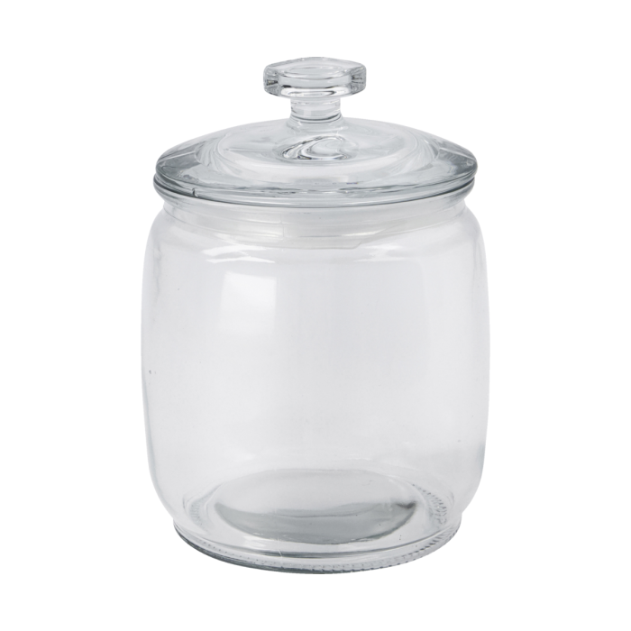 Das geräumige Glasgefäß hat einen dichten Deckel, der die Lebensmittel länger frisch hält.