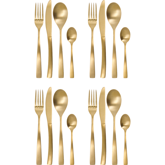 - Enthält 16 Stücke.- Edelstahl mit goldenem Finish.- Geeignet für den täglichen Gebrauch.- Perfekt für besondere Anlässe.