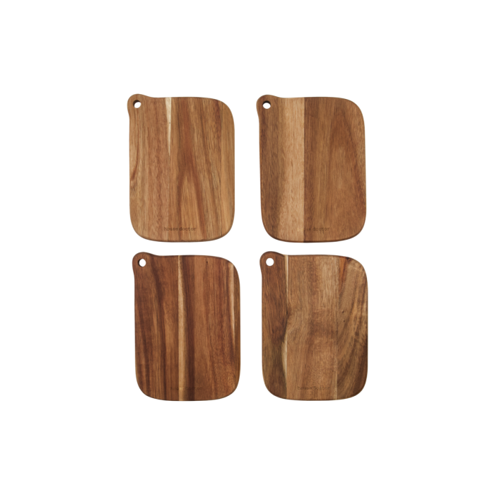 Fügen Sie Eleganz in Ihre Küche mit diesem schönen Set von vier Schneidebrettern aus Akazienholz hinzu, die eine wunderschön geschwungene Form und eine natürliche Farbgebung haben. Sie sind ideal sowohl für schnelles Kochen als auch für die Zubereitung leichter Gerichte und jedes Schneidebrett präsentiert eine einzigartige Oberfläche mit deutlich gemaserten Holzmaserungen.