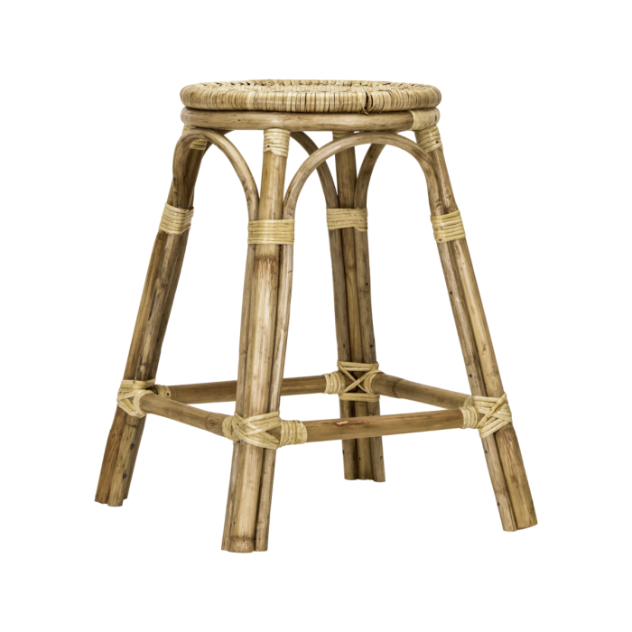 Dieser Hocker ist handgefertigt aus natürlicher Zuckerrohr und bringt rustikalen Charme und Vielseitigkeit in Ihr Zuhause. Sein aufwendiges handgewebtes Design verleiht Wärme und macht ihn zu einer perfekten Ergänzung für Ihr Badezimmer, Ihren Eingangsbereich oder Ihr Schlafzimmer als Hocker oder Beistelltisch. Stellen Sie ihn am Esstisch für einen Hauch von handwerklicher Eleganz. Jedes Stück kann leichte Variationen in der Oberfläche und Größe aufweisen, was Ihrem Interieur einen einzigartigen Charakter verleiht. - Handgewebtes Strohhantwerk