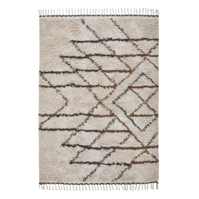 Vervollständigen Sie Ihr Wohnzimmer mit dem HDIndi-Teppich, der aus Baumwolle handgetuftet und mit einem faszinierenden geometrischen Muster in Off-White und Senfgelb verziert ist. Die Fransen des Teppichs tragen zu seinem raffinierten Charme bei und sind ideal für jede Wohnkultur geeignet.