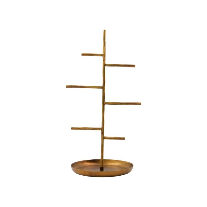 Upgrade your dressing area or makeup table with this beautifully designed jewelry stand in wood, finished with brushed brass for a touch of vintage charm. Perfect for displaying your favorite jewelry, this handmade iron stand combines functionality with aesthetic appeal. Its unique design with subtle variations makes each piece a special treasure.