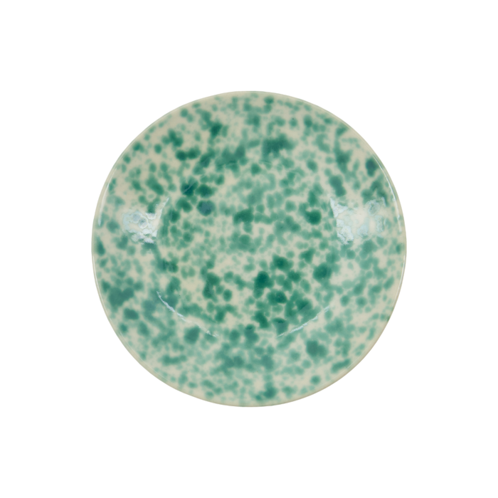 Bringen Sie mit diesem schönen Dessertteller einen frischen und lebendigen Touch in Ihr kulinarisches Erlebnis. Hergestellt aus robustem Steingut, verfügt er über ein handgemaltes grünes Spritzdesign, das Ihrem Tischgedeck ein modernes und energiegeladenes Element verleiht. Perfekt zum Kombinieren mit anderen Teilen der Serie, vereint dieser Teller mühelos Stil und Funktionalität und eignet sich ideal für den täglichen Gebrauch sowie besondere Anlässe.