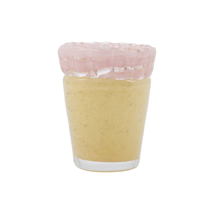 - Einzigartiges handgefertigtes Design- Beiges Glas mit rosa Rand- Funktioniert als Vase oder Teelichthalter- Verleiht Charme und Farbe
