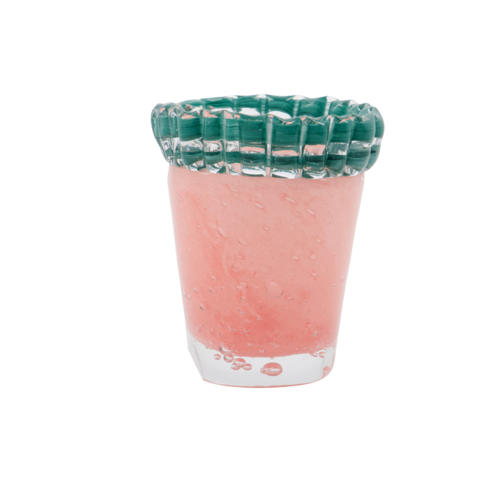 Verleihen Sie Ihrem Zuhause mit dieser exquisiten handgefertigten Vase einen Hauch von Farbe und Charme. Hergestellt aus rosafarbenem Blasenglas und mit einem grünen, geschwungenen Rand versehen, verleiht sie jedem Dekor ein einzigartiges Flair. Egal, ob sie Ihren Esstisch schmückt oder auf einem Regal steht, ihr verspieltes Design wird Sie faszinieren und verzaubern. Da sie auch als Teelichthalter verwendet werden kann, ist sie eine vielseitige Ergänzung zu Ihrem Dekor, die Wärme und Stil verleiht.