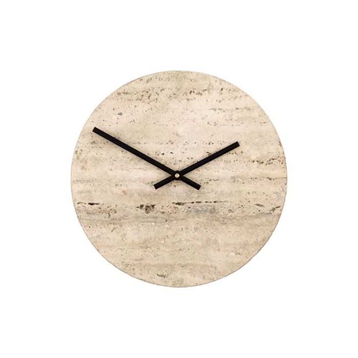 Aufwerten Sie Ihre Einrichtung mit diesem handgefertigten Travertinuhr, der eine dezente graue Nuance und markante schwarze Zeiger hat, die auf elegante Weise natürliche Schönheit mit modernem Design vereinen. ACHTUNG Batterie nicht enthalten.
