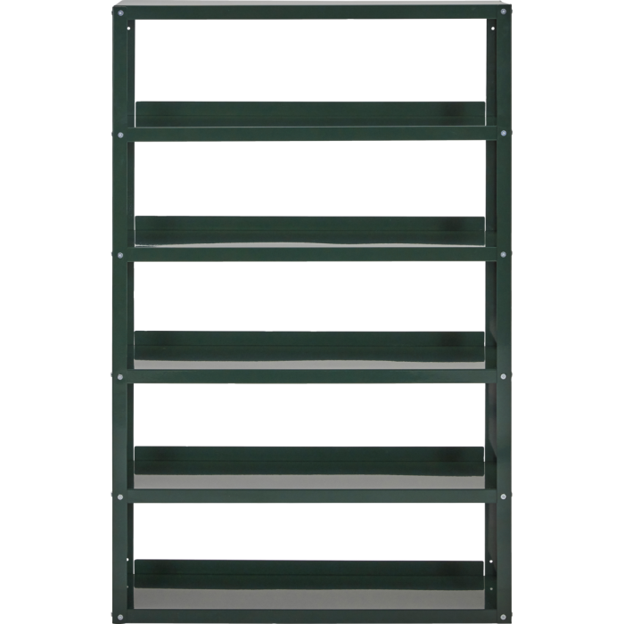 Dieses dunkelgrüne Regal verleiht jedem Raum zeitlose Eleganz und Funktionalität. Hergestellt aus strapazierfähigem Stahl mit einem glänzenden Finish, hat es sechs Regale, die jeweils bis zu 5 kg tragen können. Es eignet sich ideal, um Ihrem Zuhause eine persönliche Note zu verleihen. Das minimalistische Design macht das Regal leicht in verschiedene Einrichtungsstile zu integrieren.