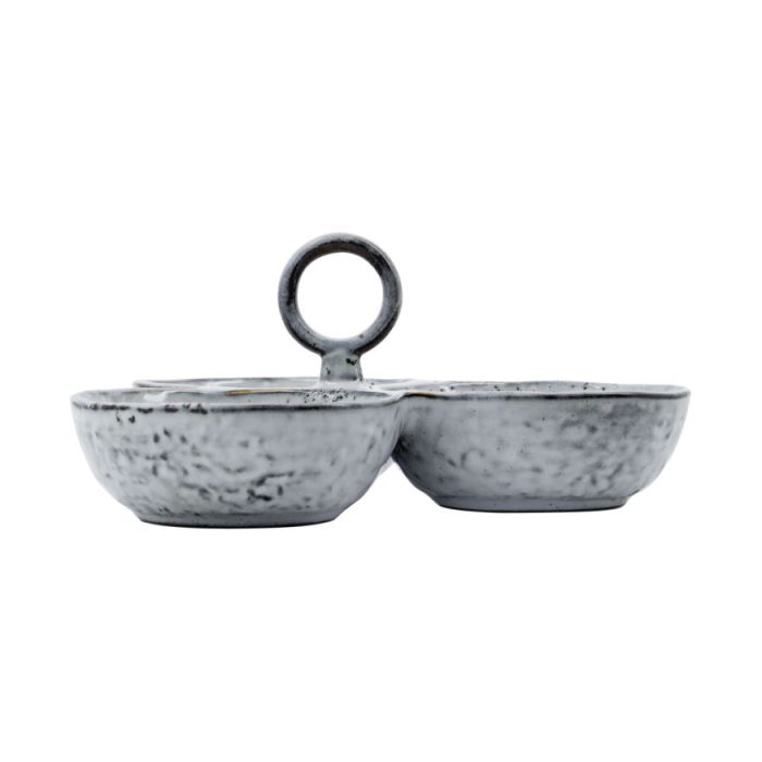 Verbessern Sie Ihr Essenserlebnis mit unseren eleganten handgefertigten Steingut-Servierschalen. Ausgestattet mit praktischen Griffen sind diese verbundenen Schalen ideal für eine Vielzahl von Gewürzen.