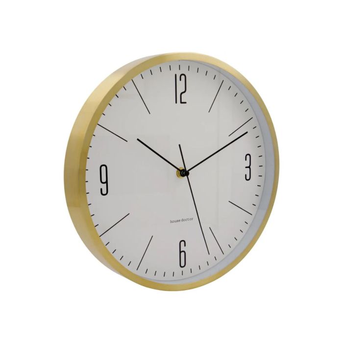 Fügen Sie mit dieser exquisiten Wanduhr einen Hauch von moderner Eleganz zu Ihrem Zuhause hinzu. Das schlanke Design verfügt über einen Aluminiumrahmen mit goldenem Finish, der Stil und Funktionalität nahtlos verbindet. Schwarze Zahlen und Zeiger heben sich von dem weißen Zifferblatt ab und sorgen für Klarheit und einfaches Ablesen. Die minimalistische Ästhetik der Uhr ist perfekt für jeden Raum und bietet eine raffinierte, aber dezente Ergänzung zu Ihrer Einrichtung.