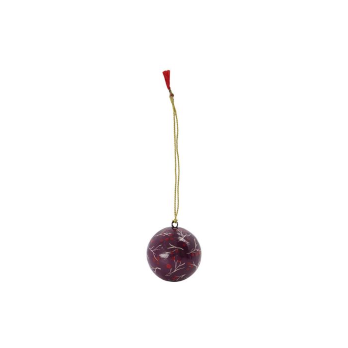 Mit diesem großen Weihnachtskugel aus Pappmaché bist du bereit für ein Weihnachten mit einem selbstgemachten Touch. House Doctor hat Wasserfarbe verwendet, um das Blatt- und Beerenmuster auf einem klassischen bordeauxfarbenen Hintergrund zu schaffen und mit einer Schicht glänzendem Lack abzuschließen. Hänge Mache an deinen Weihnachtsbaum und kombiniere sie mit Kugeln, Sternen und anderen Ornamenten aus verschiedenen Materialien für eine persönliche und gemütliche Note zu Weihnachten. Sie wird auch eine farbenfrohe Ergänzung zu einem dekorativen Tablett, als Mittelpunkt auf dem Esstisch oder in einer Bodenvase mit Zweigen sein.