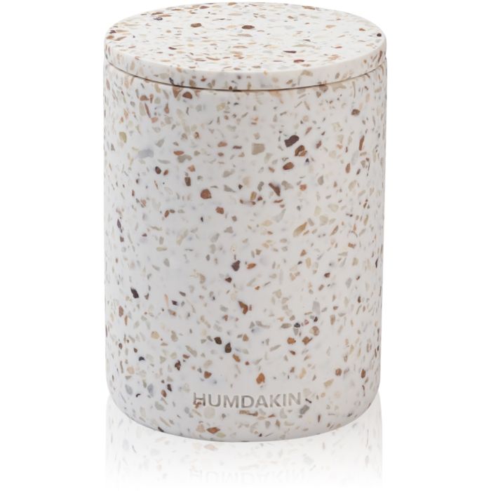 Schöne Vase aus Terrazzo. Die Vase wird mit einem Deckel geliefert. Verwenden Sie sie zur Aufbewahrung im Badezimmer oder in der Küche und als stilvolles Element in Ihrem Zuhause.